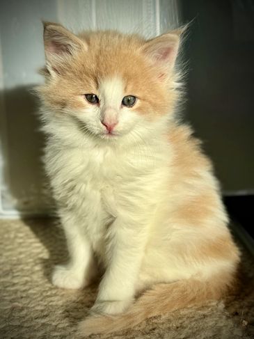 Quill is a cream and white boy with a beautiful profile and lovely markings. He stars in many videos as “The Talker”! Quill is extremely social and connected, and is in the middle of all the action. He’s the biggest kitten in his litter, and will be tall and lanky like his mama.