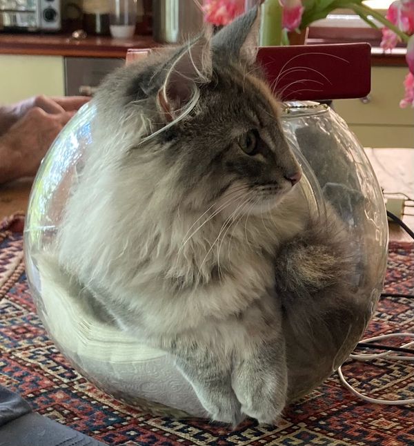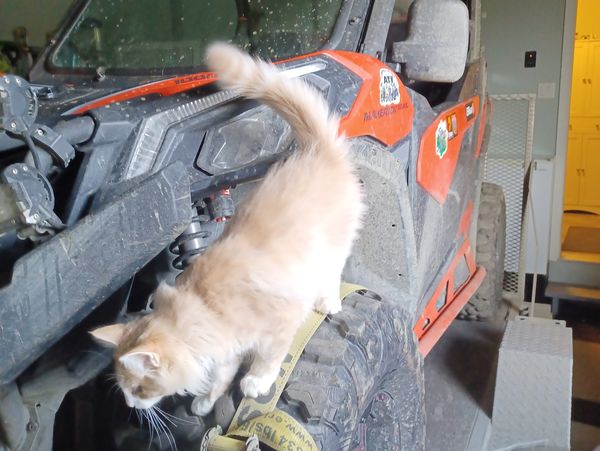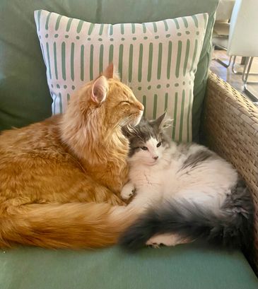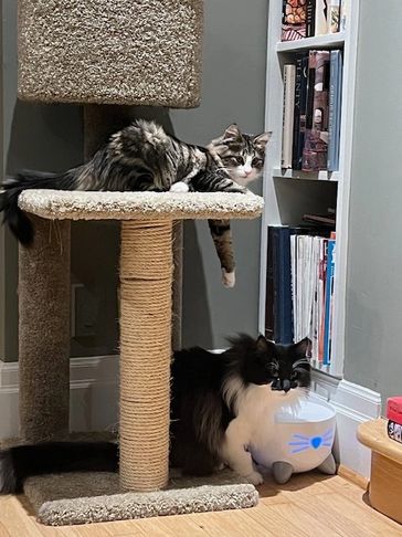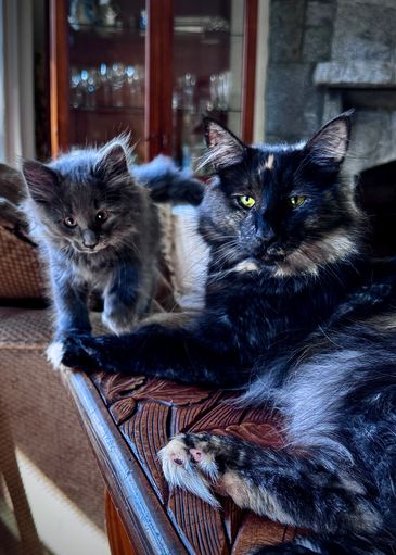 Loki is living in Campbell River with a gourmet cat food cook and quadder. His new Maine Coon sister is showing him the ropes (but Loki scales all the high places.)