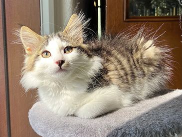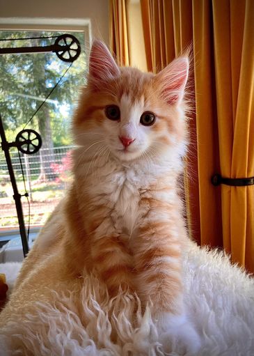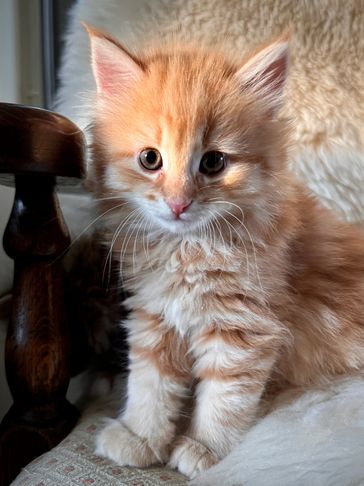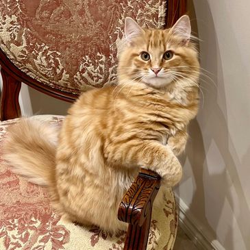 Taavi is a red and white male who is destined for a wonderful life as a companion cat for a Norwegian Forest cat big sister. Together they’ll wow the show halls!
