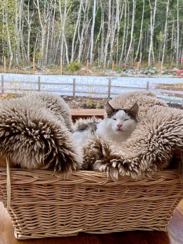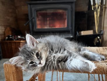 Maja is living in New Brunswick to be with her new parents and 3 young children. She is a blue mackerel tabby with white, like her sire Snorri.