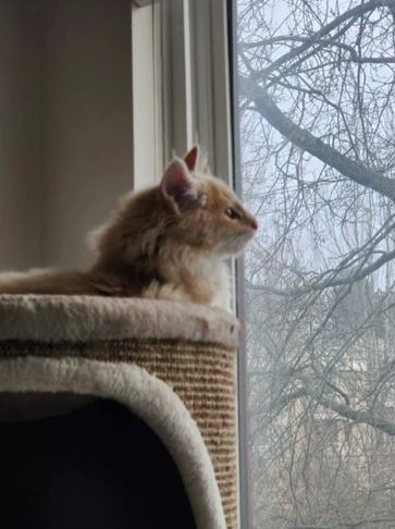 Jerome has gone to a loving cat-mama in Victoria, who reports: "He talks to me a lot - he just loves everyone - so social! He loves the camping life and spent many hours watching for hawks, crows, falling leaves, etc. He is such a love!"