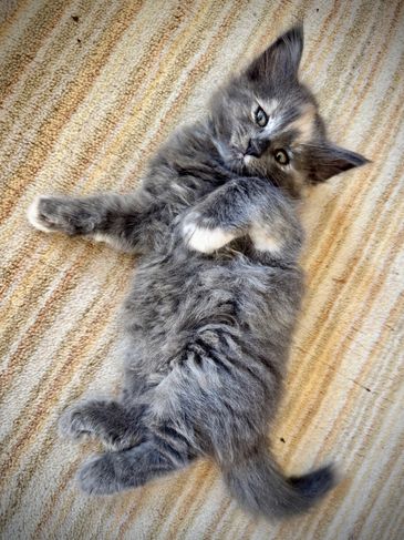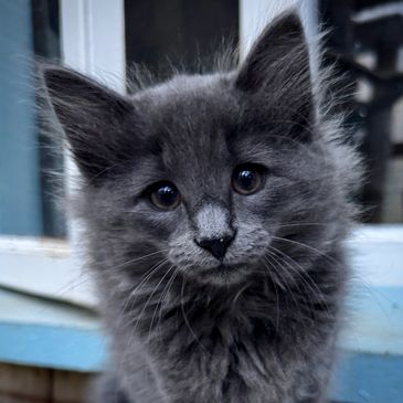 Ingrid is a stunning dark blue smoke female with a quiet, observant nature. She is home with her loving family in Kamloops.