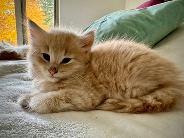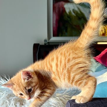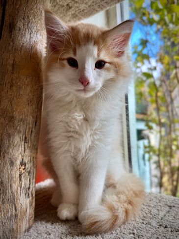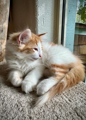 Orion is a red classic and white male, the first and only kitten of a beautiful red classic and white mama. Orion has found his forever home on Haida Gwai, and will be joining our Grace there.
