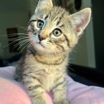 Lily is staying with her mama and family in Edmonton. She is a blue tabby with beautiful markings, and she has lots of curiousity.