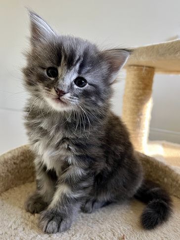 Merlin is a blue smoke male, easy-going, friendly, and playful.
