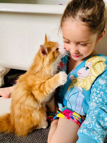 From A: “We just love our little Artemis. All the kids dote on her - she either sleeps with me or my middle child. I can’t believe how even tempered she is. We feel so fortunate to have such a calm, loving, intelligent cat with us!“